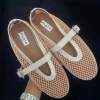 ALAIA FISHNET MARY JANE BALLET FLATS MESH LEATHER SOLE MASTER QUALITY