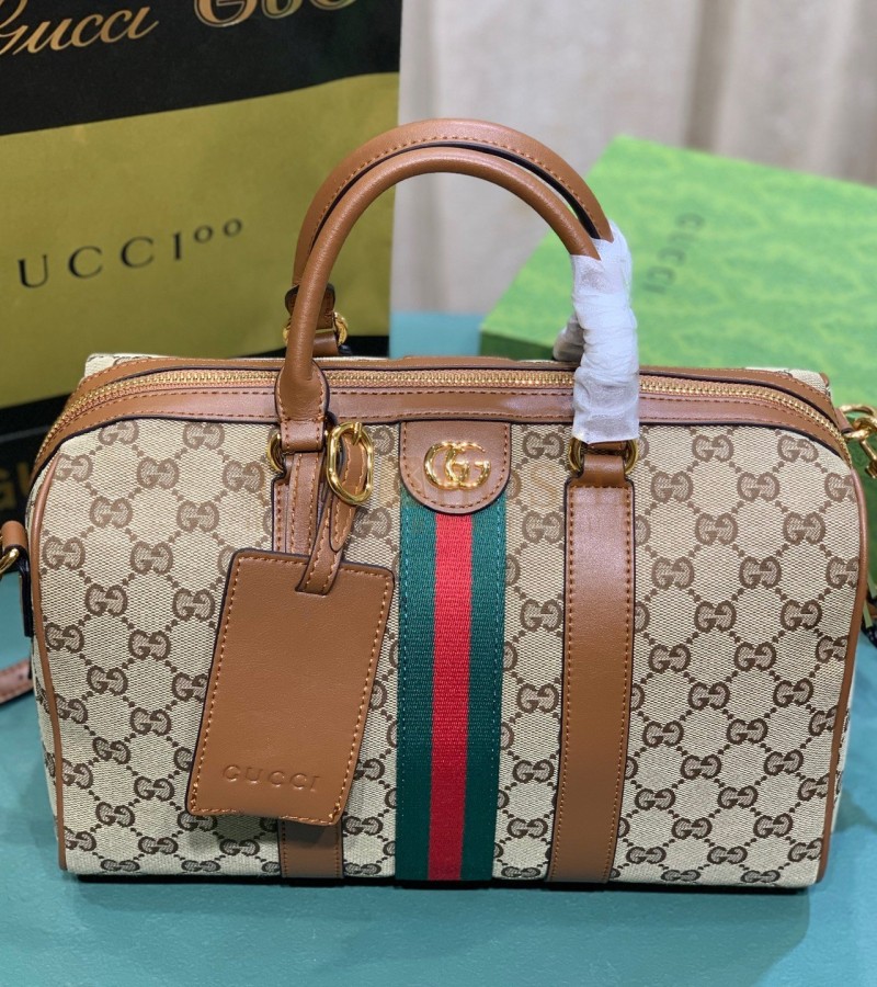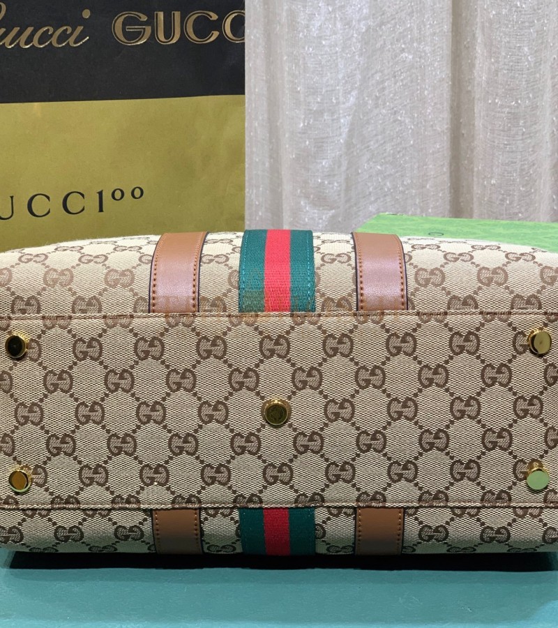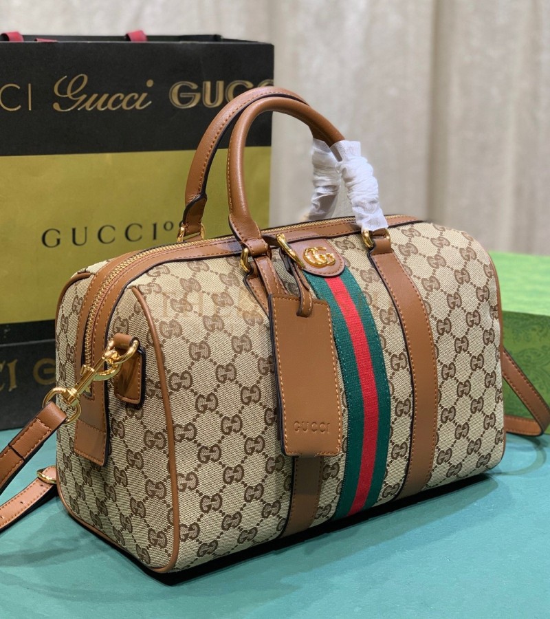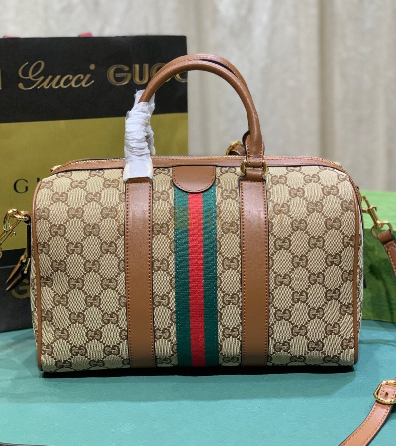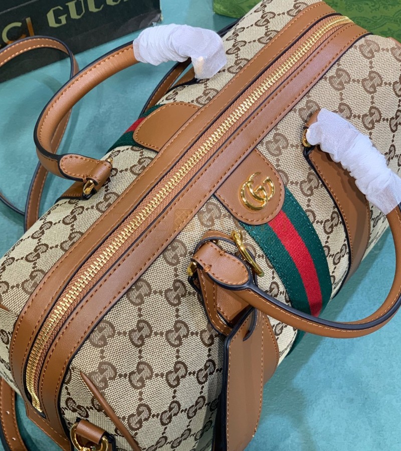 GUCCI OPHIDIA PILLOW BAG 30X16X20CM CANVAS RED/GREEN WEB LEATHER TRIM MASTER QUALITY