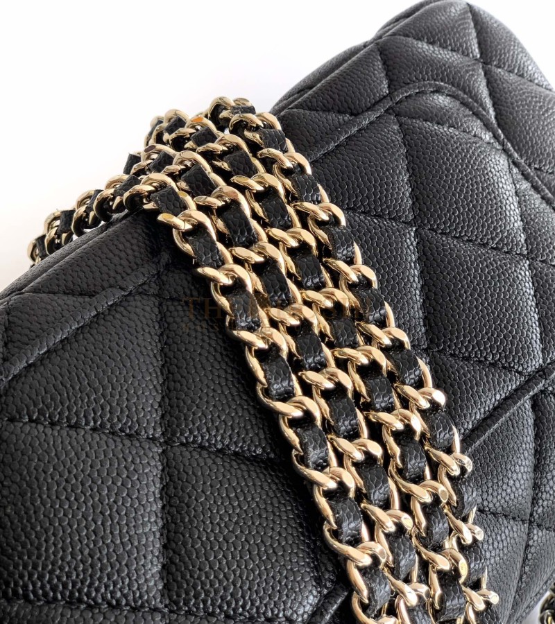 CHANEL 25A CLUTCH ON CHAIN BAG BLACK CAVIAR LEATHER SIZE 21×12×5.5CM