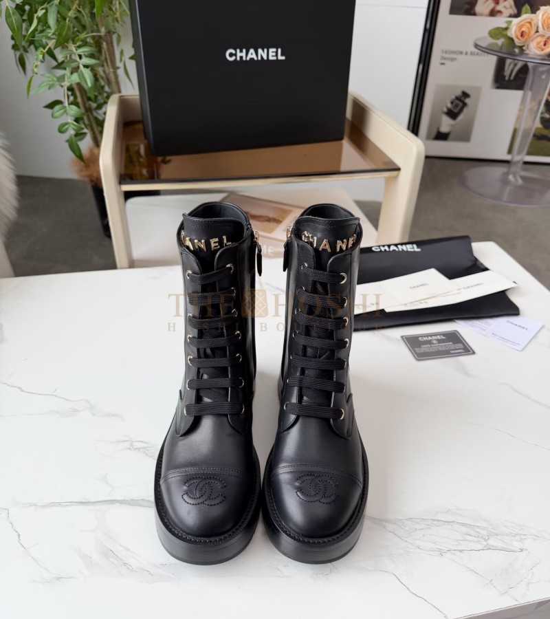 CHANEL LACE-UP FLATS LEATHER UPPER SIZE 35-42 BLACK MASTER QUALITY